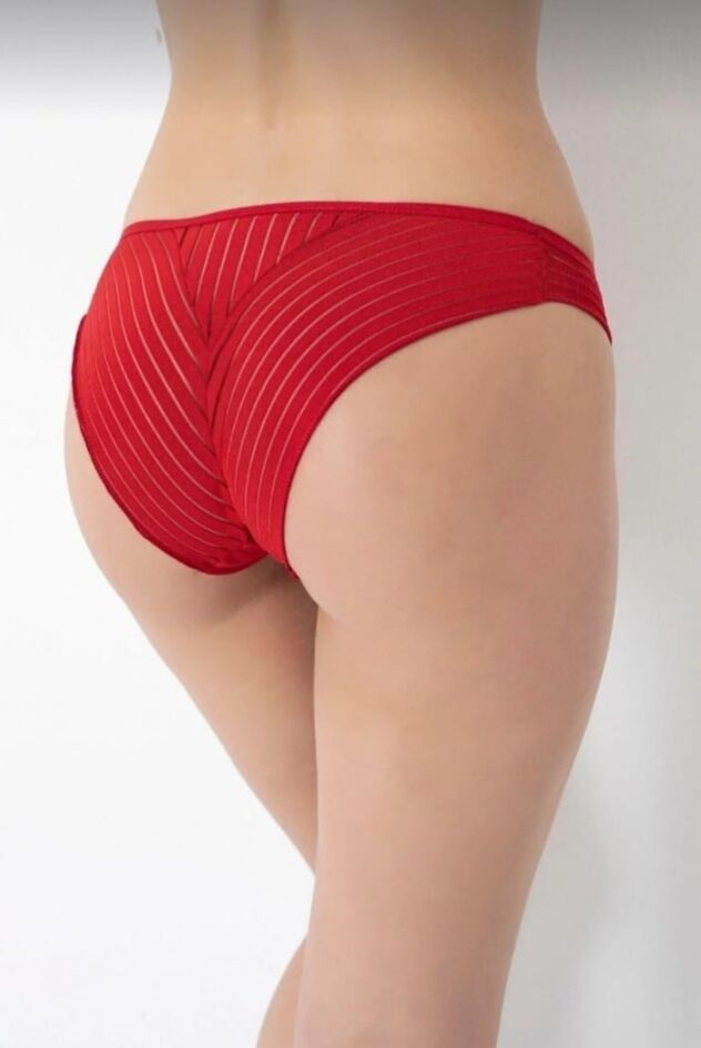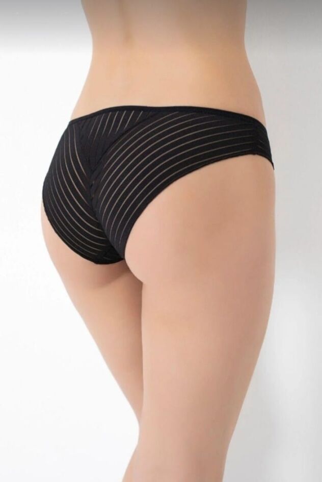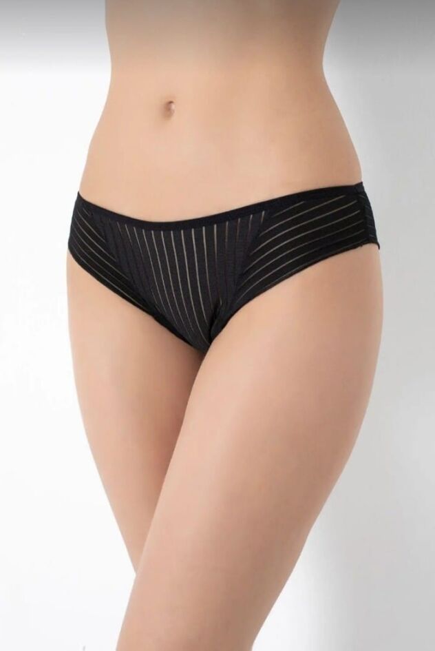 Modern Çizgiler, Zarif Dokunuşlar: Bu özel tasarım külot, klasik iç giyim anlayışını modern ve dinamik bir tarzla birleştiriyor. Ürünün tamamına hakim olan dikey ve çapraz şerit geçişleri, vücut hatlarını zarifçe vurgularken sofistike bir transparanlık sunar.