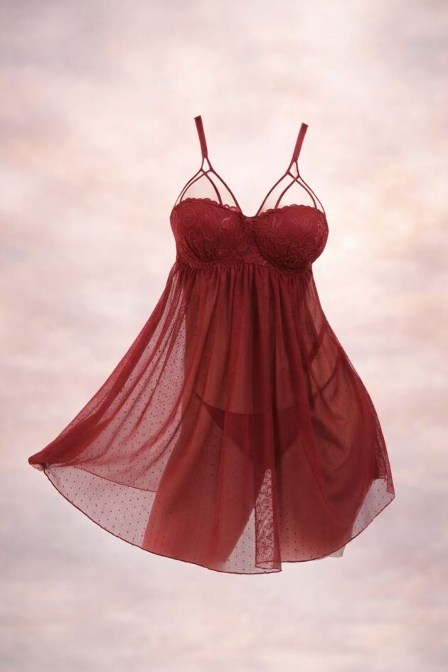 Çekici ve zarif tasarımıyla öne çıkan bordo renkli bir babydoll takımıdır. Hem konforu hem de estetiği bir araya getiren bu model, özel anlar için ideal bir seçenektir.